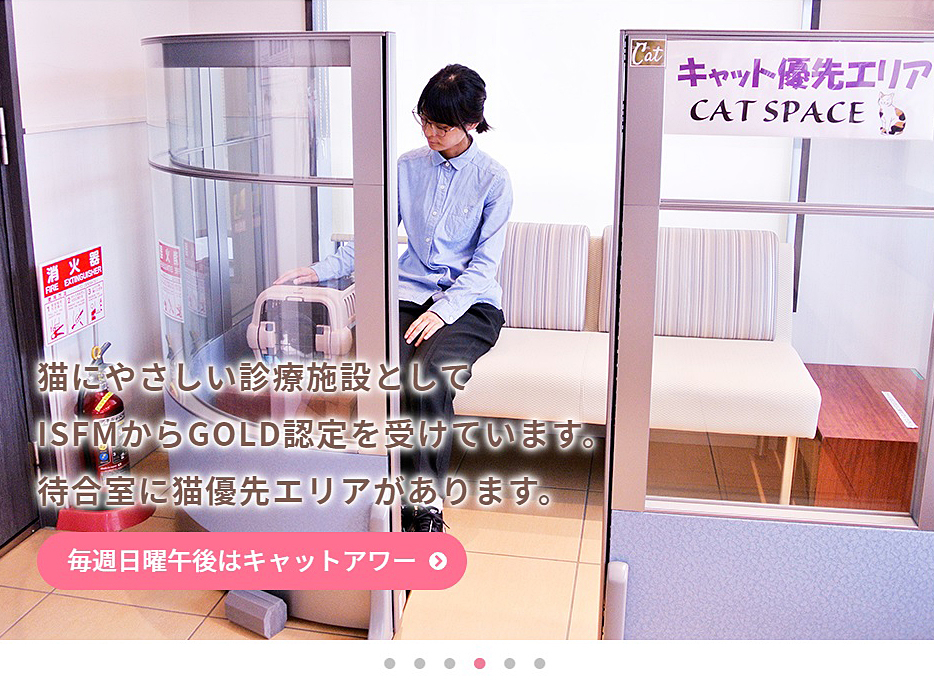 当院は英国ISFMからGOLDの認定を授与された猫に優しい診療施設で、目については高度・応用・先端獣医療を目指したユニークな病院です。また、ALL CARESの立場から、一般診療や予防のほか、緩和ケア、麻酔・外科、内科、歯科、循環器科、猫の予約診療など幅広く対応しています(210517)。